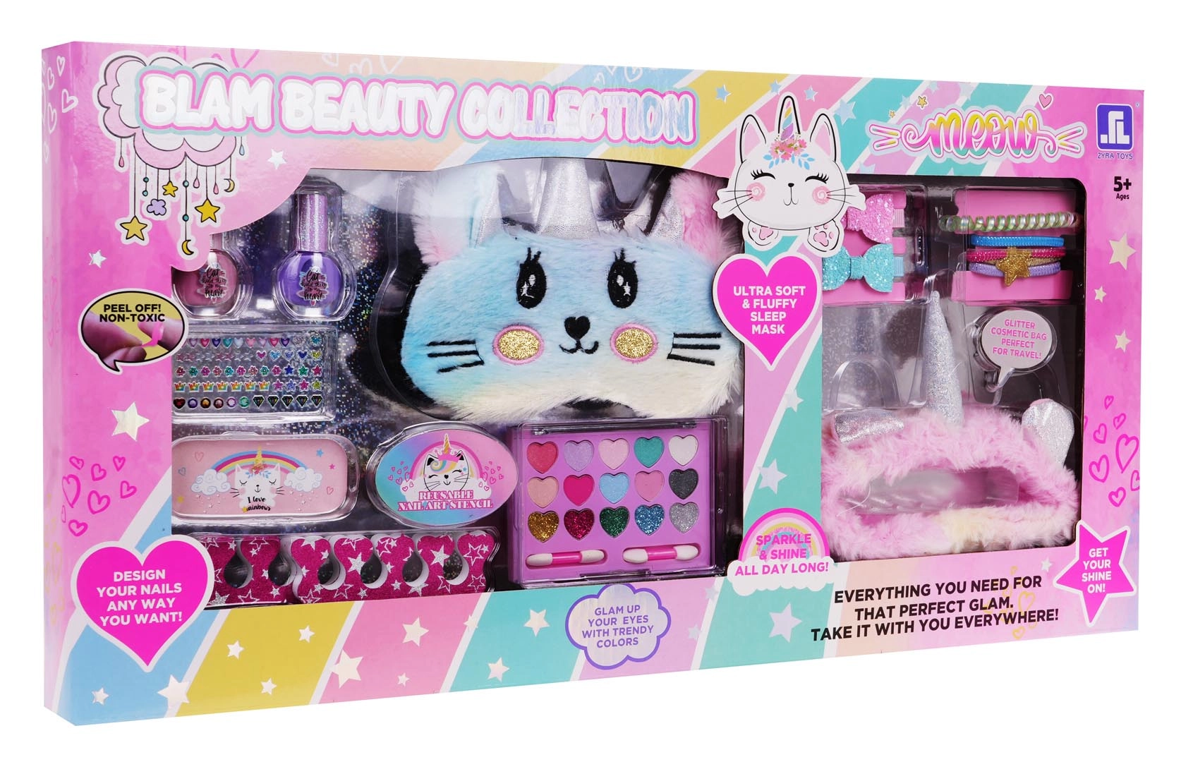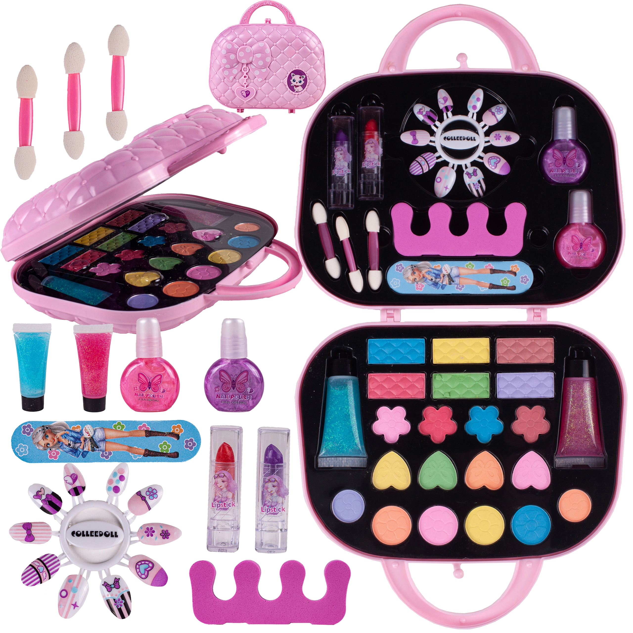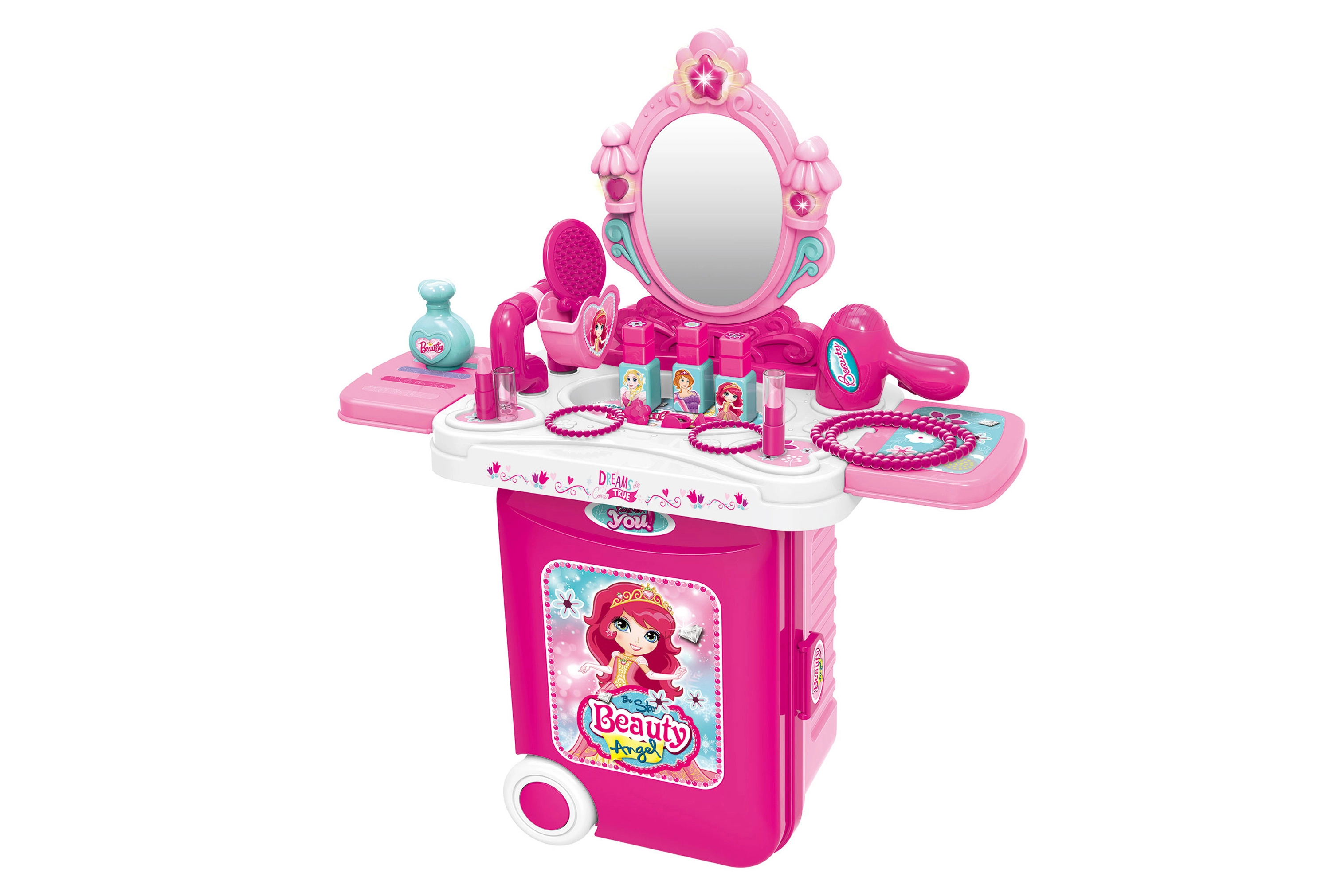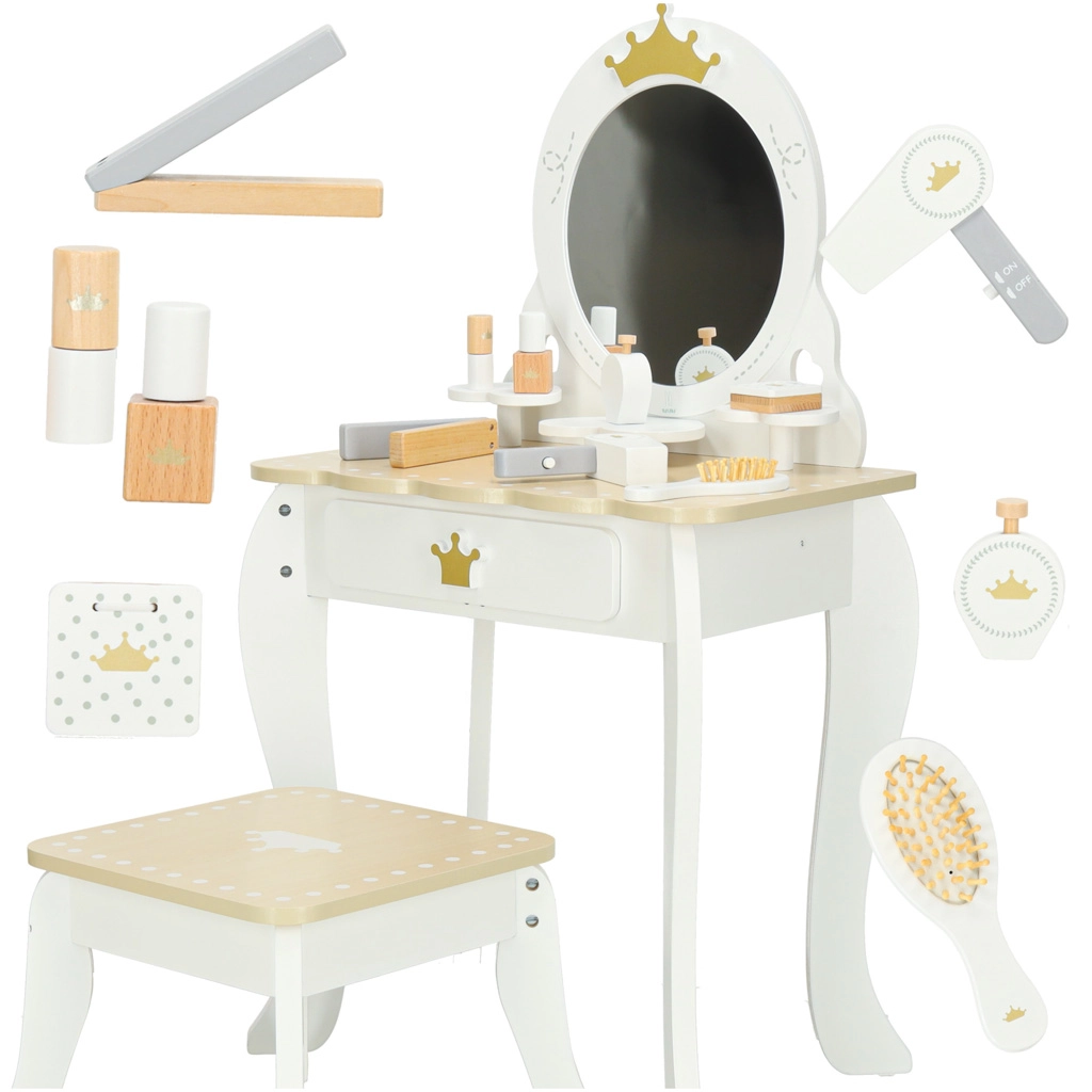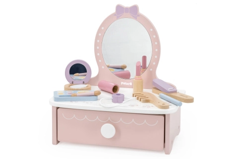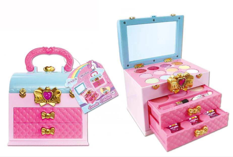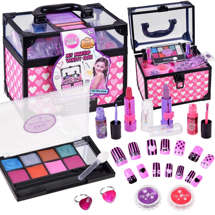Kosmeetikakohvrid, tualettlauad ja juuksurikomplektid sisaldavad kämme, harju, peapaelu, klambreid, rulle, laste fööni, sirgendajat või lokitange (mänguasjad), ohutuid peegleid ja rikkalikku lisavarustust. Laste meik on tavaliselt mittetoksiline, mahapestav ja nahasõbralik; veepõhised küünelakid pestaakse kergesti maha ilma atsetoonita. Valikus on vastupidavad plast- ja puidukomplektid, kompaktsed kohvrid reisile ning suuremad kosmeetikalauad täisväärtuslikuks rollimänguks.