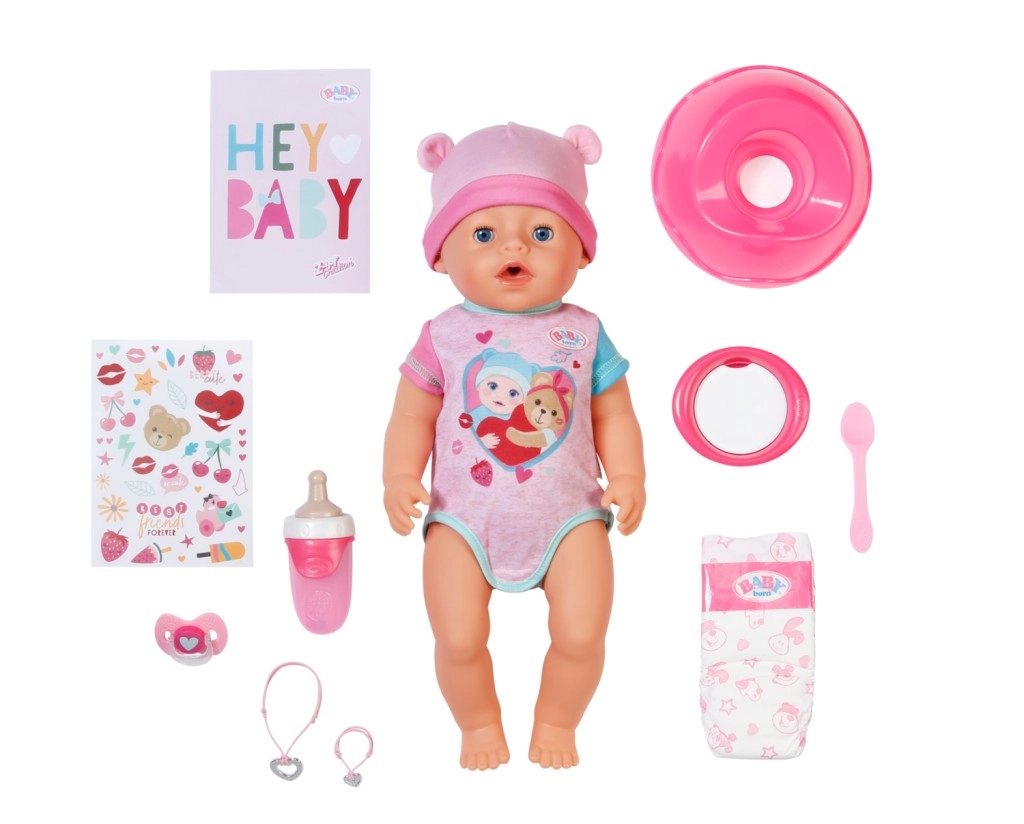 Levinud suurus on 43 cm nukk: joob lutipudelist, pissib potisse, oskab nutta päris pisaraid ja seda saab toita pudruga; valitud mudelid sobivad ka vanni. Liikuvad jäsemed, meeldivalt pehme kehake ja kvaliteetne teostus teevad riietamise ja realistliku mängu lihtsaks. Valige rikalik valik tarvikuid ja BABY born rõivaid – lutipudelid, luttid, mähkmed, potid, vannid, kärud, voodid, kandekotid ja temaatilised söögikomplektid.