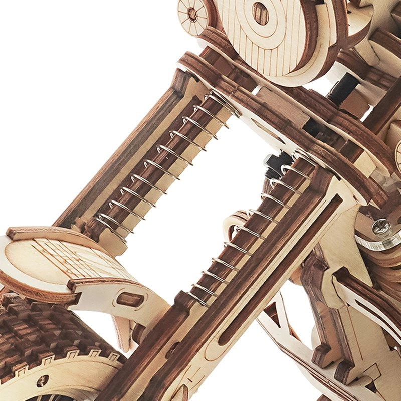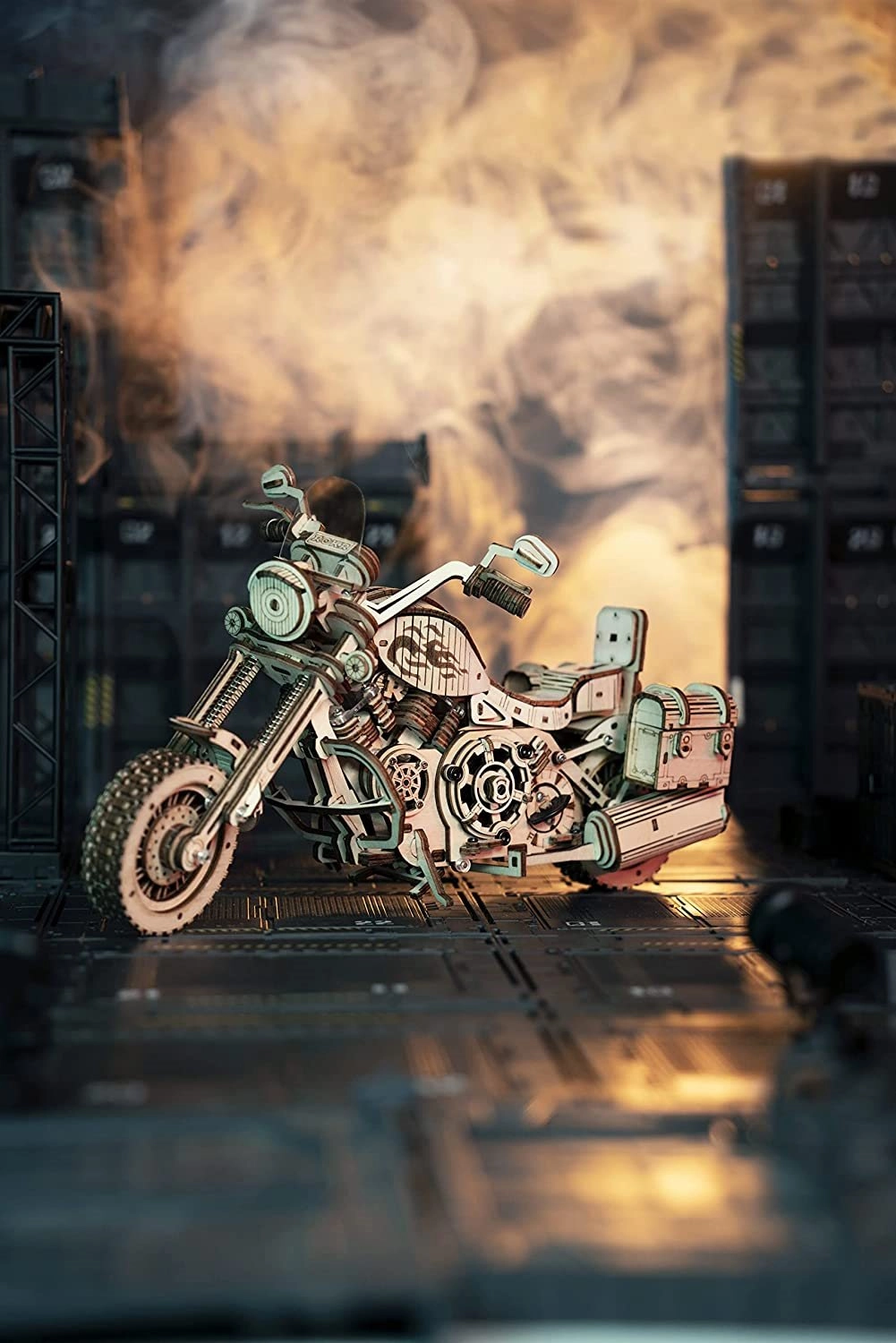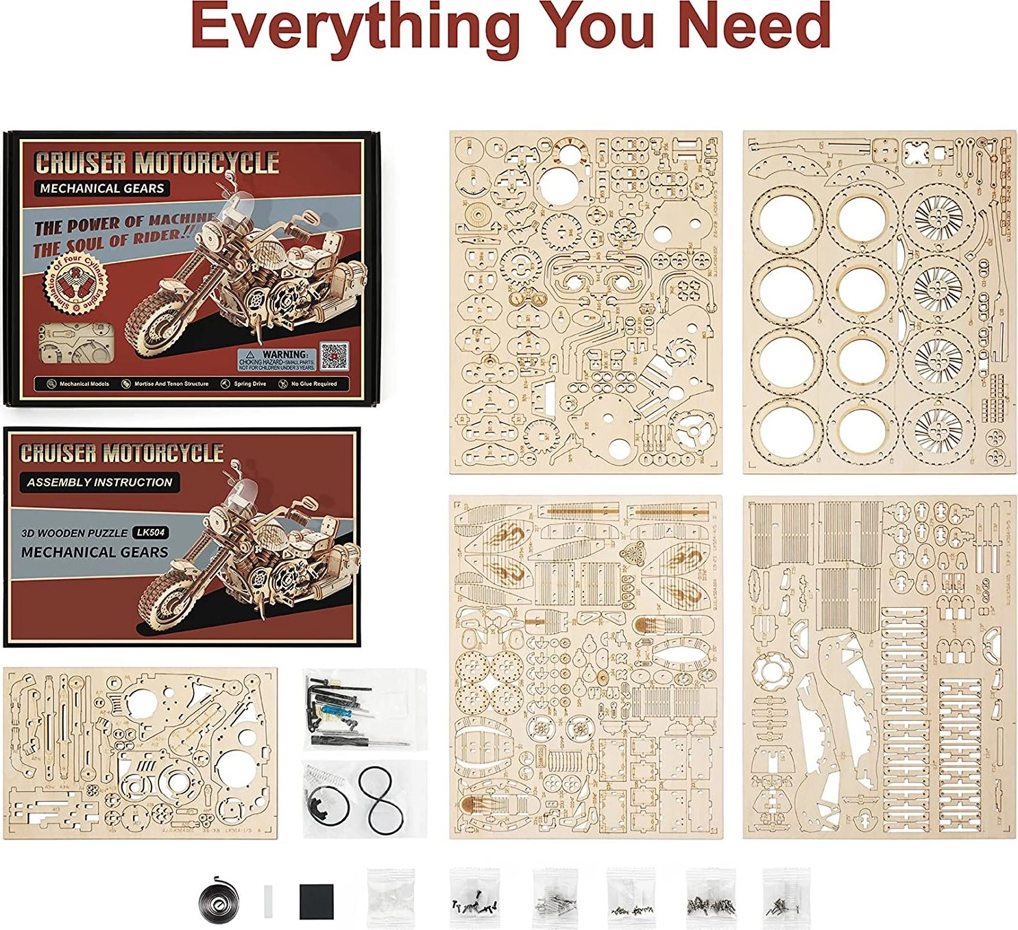 Avasta mudeliehituse rõõm selle täpse 3D vineerist mootorratta komplektiga. Mudel pakub vedruga üleskeeratavat jõuallikat, toimivat juhtimist, liikuvaid kolbe ja töötavat esiamortisaatorit. Tänu 420 detailile ja keskmisele raskusastmele naudid 4–5 tundi tegevust; pärast kokkupanekut on ratas võimeline iseseisvaks sõiduks ning paistab silma ka dekoratiivse välimuse ja väikeste panipaikadega sadula juures.