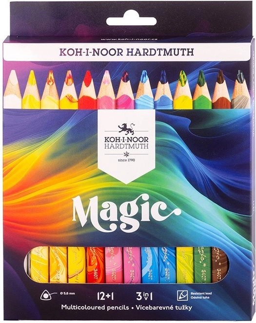 KOH-I-NOOR Magic pliiatsid sobivad suurepäraselt loominguliseks joonistamiseks, varjutamiseks ja šraffeerimiseks. Tänu ainulaadsele südamikule loovad need mitmevärvilisi jooni, mis ühtlaselt üleminevad ühest toonist teise, andes töödele plastilise 3D-välimuse. Kolmnurkne ergonoomiline kuju tagab mugava haarde ja parema kontrolli töö käigus.