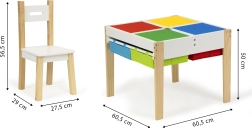 Loo lastele oma loominguline nurgake ECOTOYS komplektiga, mis ühendab mängulaua ja panipaiga ühes. Tugevad männipuidust jalad ja vastupidav MDF-plaadi pind tagavad stabiilsuse ja pika tööea. Puhas skandinaavialik disain sobib suurepäraselt lastetuppa, mängutuppa või ooteruumi.