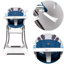 Praktiline ECOTOYS laste söögitool 6–36 kuu vanustele lastele pakub stabiilset konstruktsiooni, eemaldatavat ja reguleeritavat kandikut kahe mänguasjaga, turvavöösid ning kiiret kokkupanekut ühe nupuvajutusega. Tänu polsterdatud istmele, reguleeritavale jalatoele ja kergesti puhastatavale kattele sobib see ideaalselt nii söötmiseks kui mängimiseks kodus ja reisil.