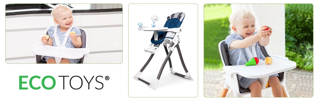 Nautige mugavat ja turvalist söötmist ECOTOYS söögitooliga, mis võimaldab lapsel istuda laua ääres koos perega. Lai kandik kõrgendatud servaga hoiab toidu põrandale kukkumast ning kaks värvilist mänguasja lõbustavad last toitu oodates. Tänu läbimõeldud ergonoomikale ja kindlale kinnitusele on laps ohutus ja mugavas asendis.