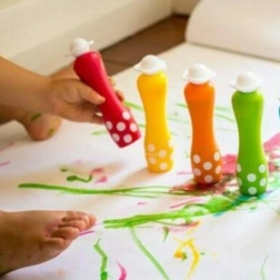 Käsna-aplikaator doseerib värvi ühtlaselt, nii et lapsed saavad tupsutada, templida ja värvida ilma mahaloksu ja liigse segaduseta.