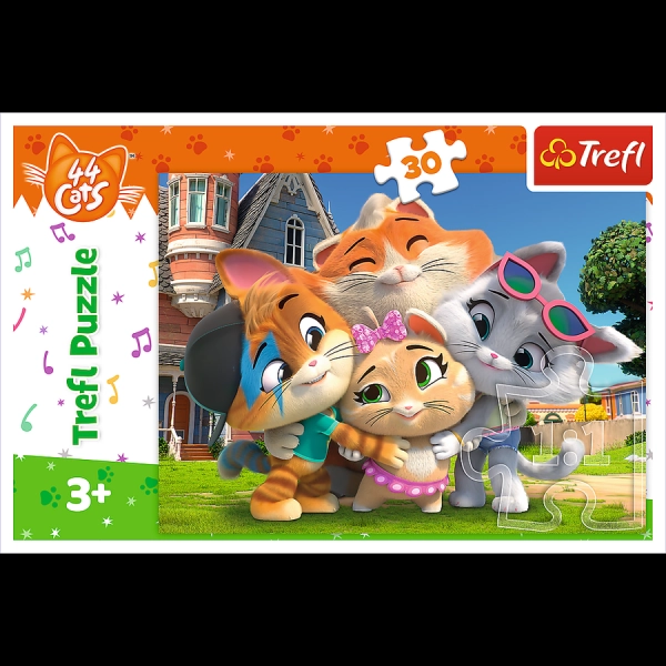 Pusle Sõprus kasside maal sisaldab 30 tükki ja on ideaalne kõigile muinasjutu 44 kassi fännidele. Kokku panduna moodustab pildi mõõtudega 27 x 20 cm. Valmistatud kvaliteetsetest materjalidest, spetsiaalse valgust peegeldava paberiga, mis muudab kokkupaneku lihtsamaks.