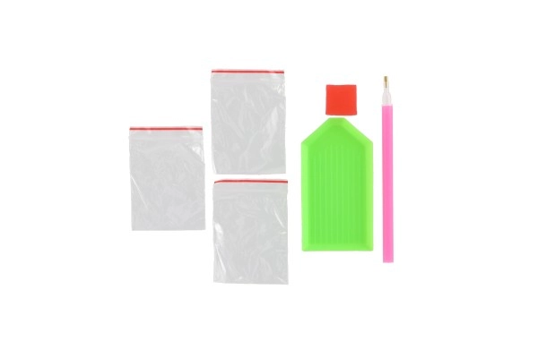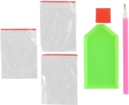 - eeltrükitud lõuend, värviliste kivikeste komplekt, aplikaatorpliiats, alus, vaha