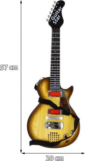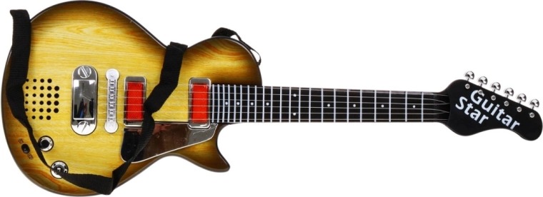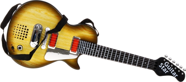 See stiilne lastekitarr puitu meenutava disainiga on ideaalne valik väikestele muusikutele. Tänu kompaktsetele mõõtmetele sobib see suurepäraselt ka alates 3. eluaastast ning innustab avastama rütmi ja muusikalist loovust. Kitarril on kuus metallkeelt, mis tekitavad puudutamisel heli, ning see pakub kahte režiimi – rokiliku tausta esitamine ja keeltemäng.