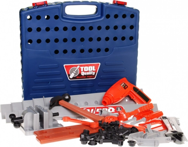 Töökoja komplekt pakub lõputuid võimalusi loovaks mänguks ja oskuste arendamiseks. Komplektis olevad tööriistad on lastele ohutud ning neid saab hoiustada praktilises kohvris.