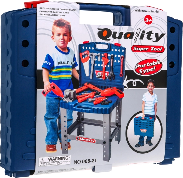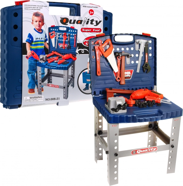See töökoja komplekt on ideaalne kingitus väikestele meistritele alates kolmandast eluaastast. Komplektis on kaasaskantav kohver ja töölaud, mis on täis lõbusaid tööriistu.