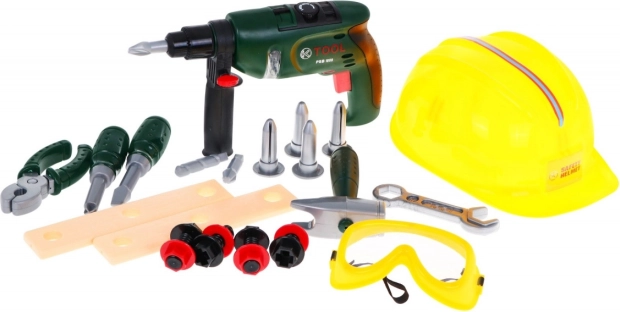 Täielik komplekt väikestele meistritele alates 3. eluaastast pakub realistlikku mängurõõmu ja õppimist. Sisaldab patareitoitel elektrilist trelli, kaitsekiivrit, kaitseprille ning rikkalikku komplekti plastiktööriistu ja ühendusvahendeid. Arendab peenmotoorikat, loogilist mõtlemist ja loovust turvalises päristegevuste matkimses.