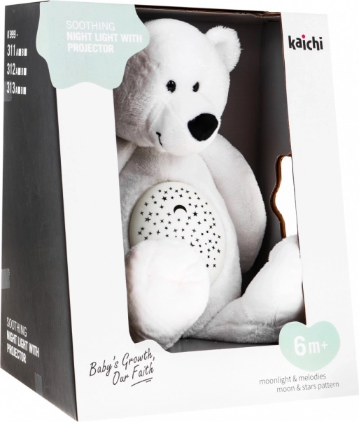 Armas ja pehme kaisukaru sisseehitatud projektori ja helimooduliga aitab lastel alates 6. elukuust rahulikult uinuda. Pakub 3-ühes: pehme mänguasi, öölamp ja tähistaeva projektor unelaulude, südamelöögi ja meremüha helidega. Tänu 40-minutilisele taimerile, helitugevuse reguleerimisele ja eemaldatavale, pestavale katele on see ideaalne valik lastetuppa.