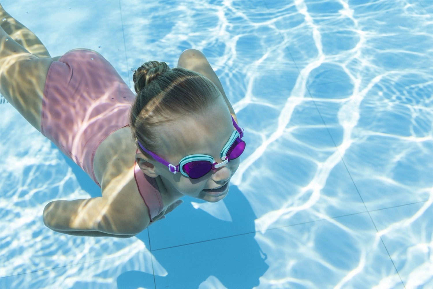 Ergonoomiline kuju koos reguleeritava ninasilla ja silikoonrihmaga võimaldab täpselt sobitada lapse pea kujuga. Läätsed on löögikindlad ja varustatud UV-kaitsega, sobides nii sisebasseini kui päikese kätte. Roosa värv lisab igale ujumiskorrale mängulise ilme.