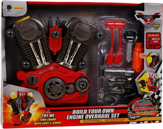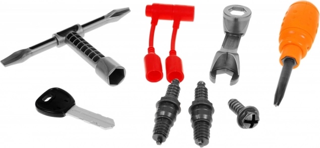 Komplekti kuuluvad erinevad plasttööriistad, mis võimaldavad lastel tõetruult proovida mootori parandamist ja kohandamist.