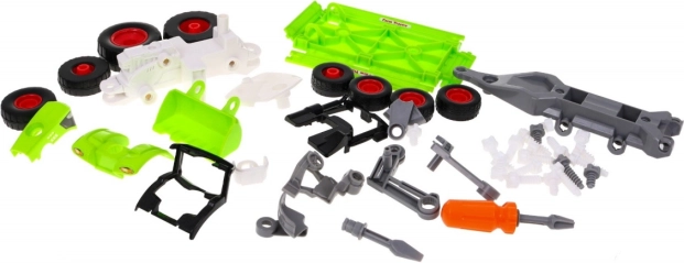 See vahva traktor järelkäruga on mõeldud alates 3. eluaastast. Traktori kokkupanek ja lahtivõtmine kahe vahetatava otsikuga trelli abil pakub lõputult lõbu ja arendab peenmotoorikat. Lapsed saavad mängida väikeste mehaanikutena, mis tugevdab loovust ja tunnetuslikke oskusi.