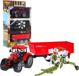 Realistlik komplekt väikestele farmeritele alates 3. eluaastast: punane traktor hõõrdejõu veoga, kallutav haagis ja toimiv heina pöördmik. Tugev teostus, liikuvad osad ning võimalus lisasid ühendada ja lahti võtta toetavad loovat mängu ja arendavad kujutlusvõimet.