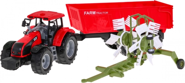 - 3-osaline komplekt: traktor, kallutav haagis, heina pöördmik