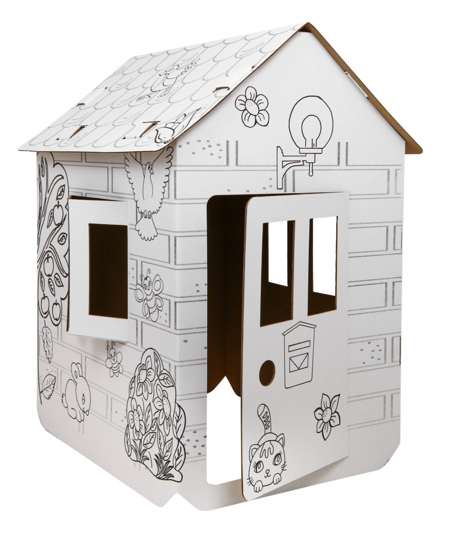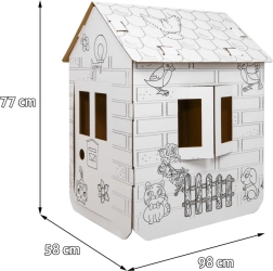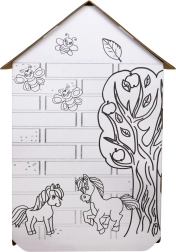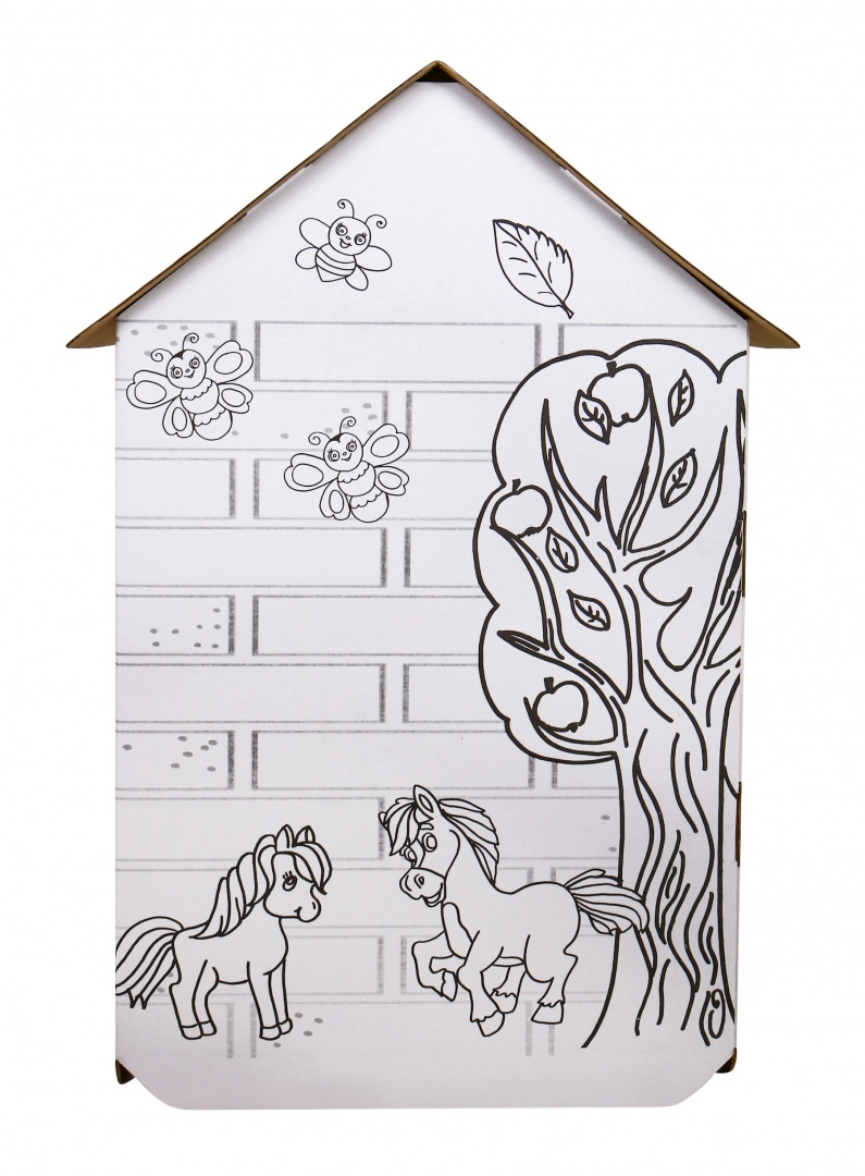 Avastage avar XXL papist majake, mida lapsed saavad ise kokku panna ja kaunistada vastavalt oma ideedele. Puhtad valged pinnad mustade hobuste ja looduse kontuuridega lausa kutsuvad värvima pliiatsite, vildikate või vahakriitidega (tarvikud ei kuulu komplekti).