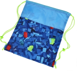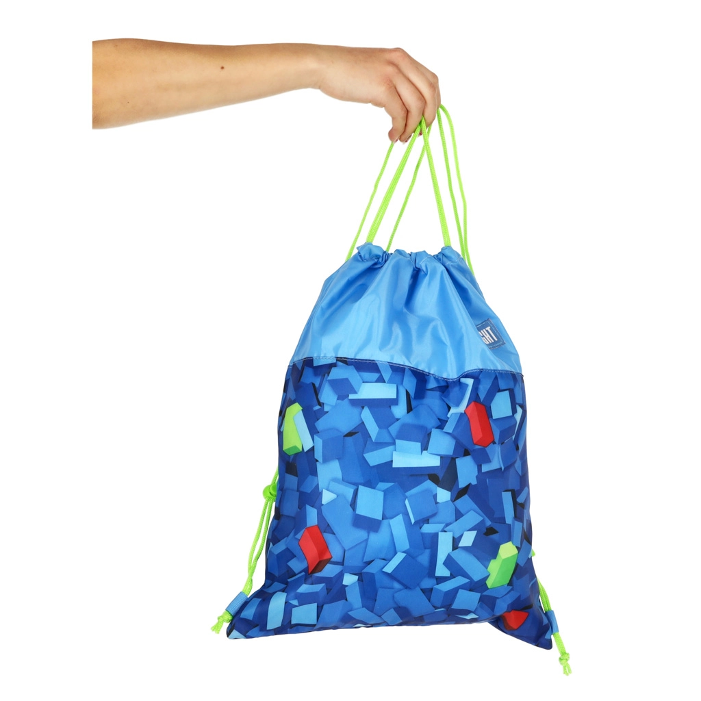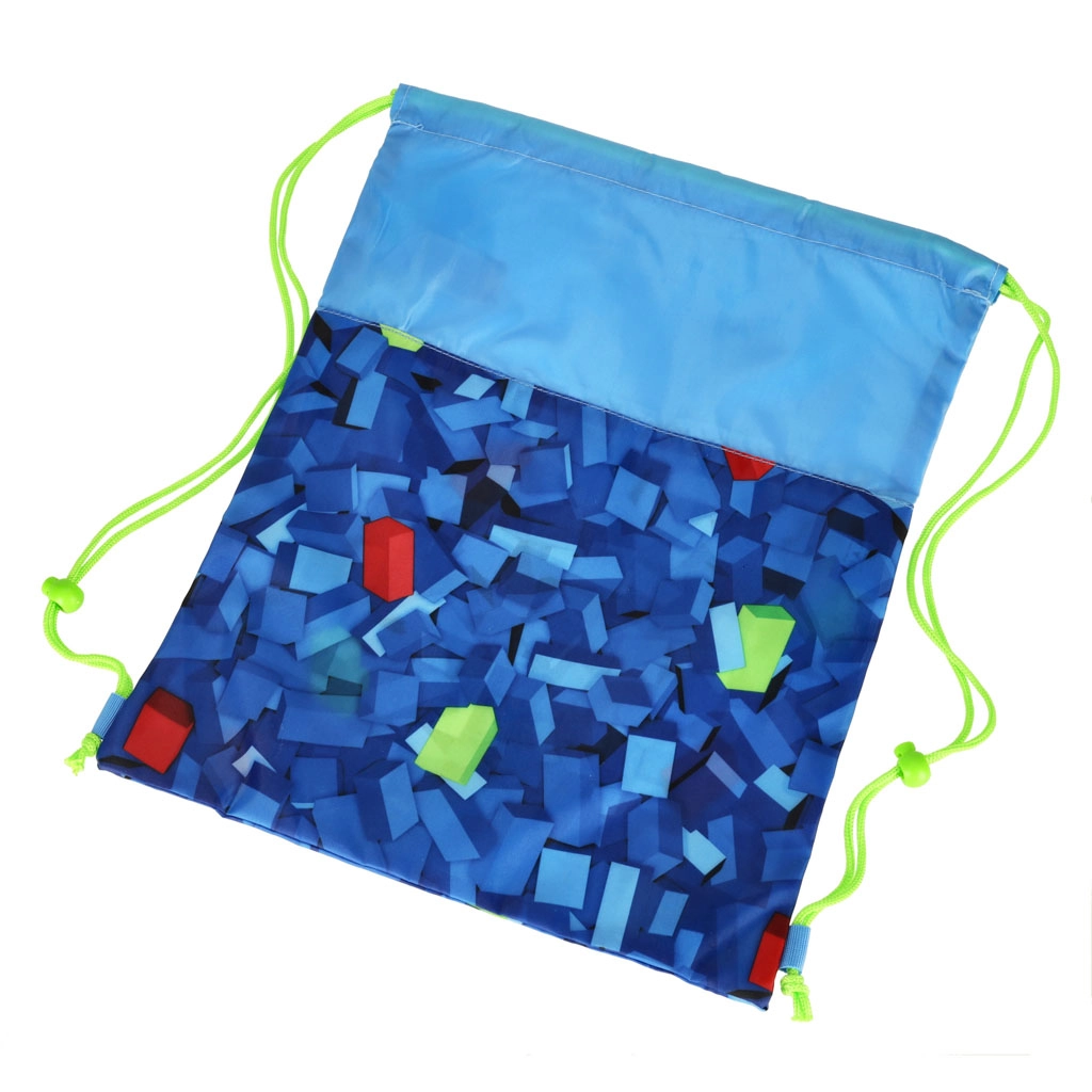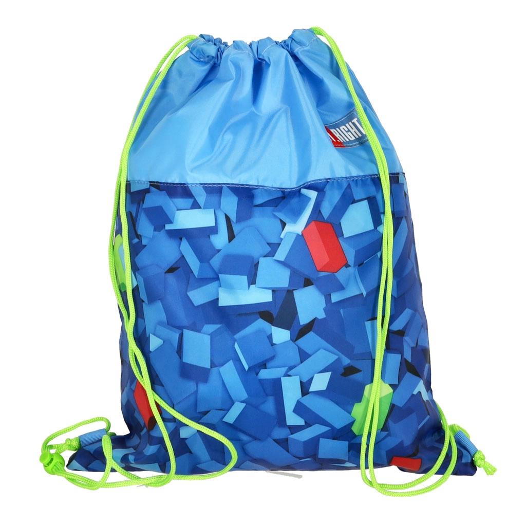 Stiilne ST. RIGHT jalanõudekott sinises värvigammas geomeetrilise klotsimustriga ühendab modernse disaini ja igapäevase praktilisuse. Fluorestseeruvad nöörid paistavad silma ning teevad kandmise ja kiire sulgemise lihtsaks. Suurepärane valik kooli, huviringidesse, kehalise tundi või lühikestele väljasõitudele.