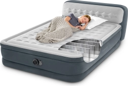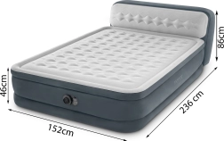 Kaheseinaline täispuhutav voodi INTEX tehnoloogiaga Dura-Beam Fiber-Tech pakub suurt magamispinda, integreeritud peatsit ja sisseehitatud elektripumpa kiireks täis- ja tühjapumpamiseks. Põrandast kõrgus 46 cm ning pehme veluurpind tagavad mugavuse, stabiilsuse ja puhta välimuse. Maksimaalne kandevõime 272 kg kindlustab usaldusväärse une kahele.