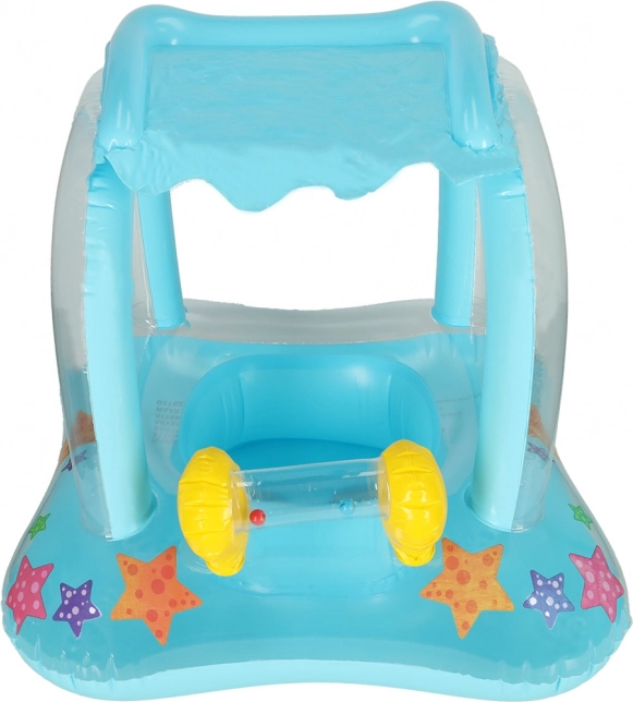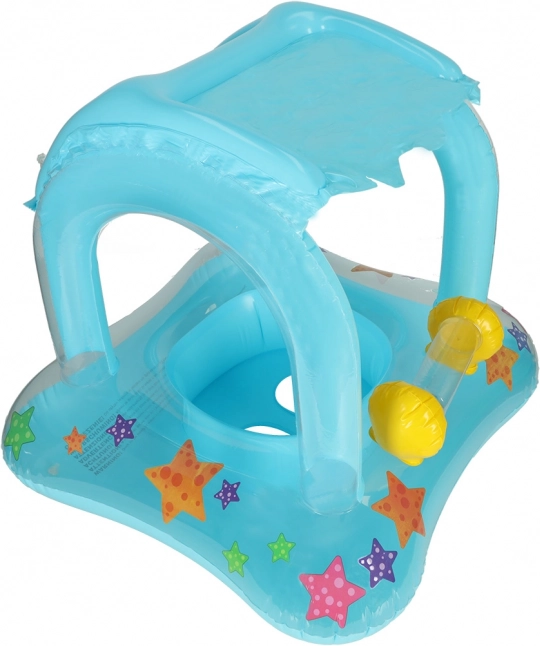 Täispuhutav ujumisrõngas baldahhiiniga on ideaalne lahendus sinu kõige pisemate turvalisteks veemängudeks. Selle pilkupüüdev sinine värv ja värvilised meritähed kaunistavad iga veekogus veedetud päeva. Baldahhiin kaitseb last päikesekiirte eest, samal ajal kui ta saab mugavalt mängida ja lainetel õõtsuda.