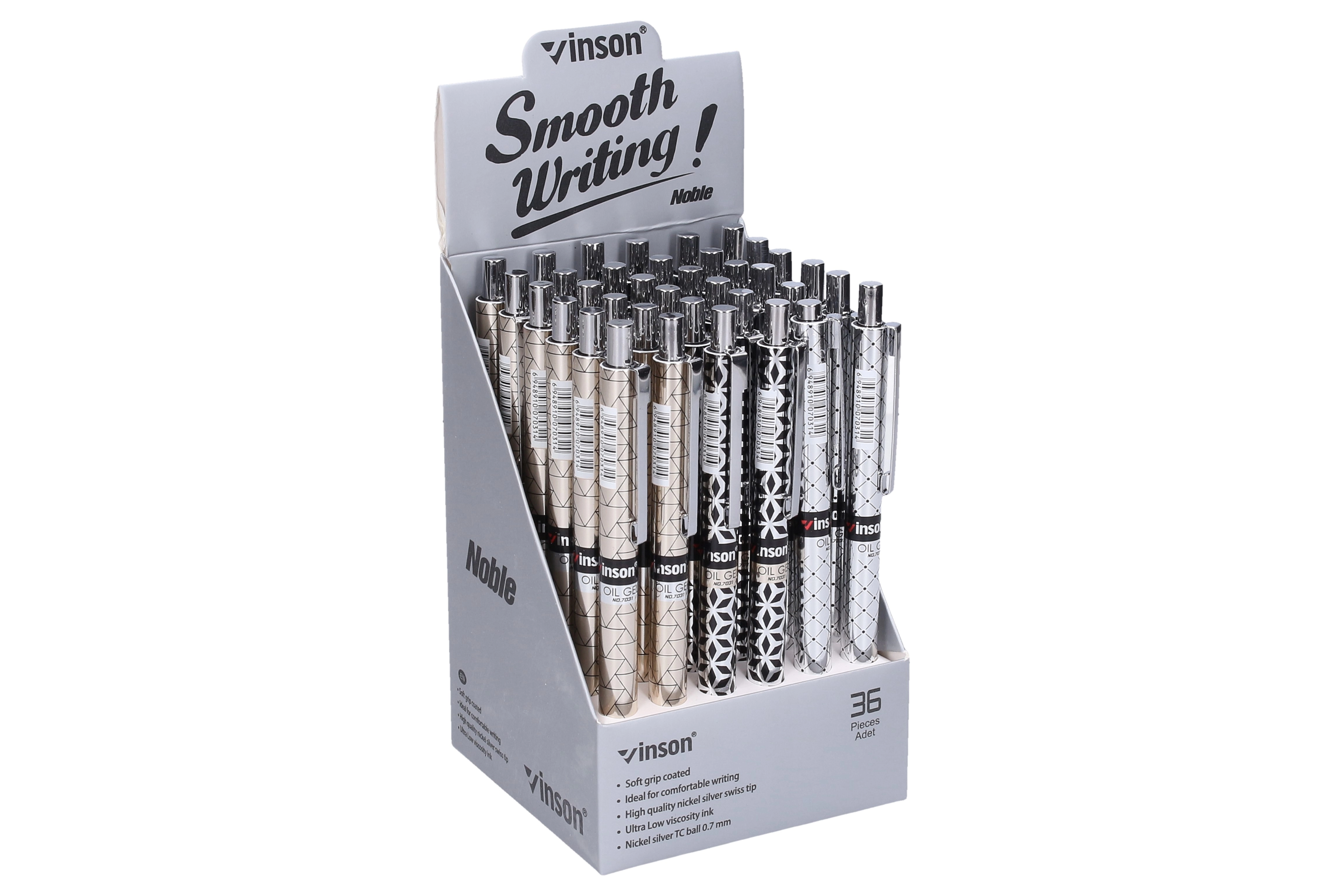 See geelpliiatsite komplekt ühendab vedela ja õlitindi, pakkudes sujuvat kirjutamist puhta ja hästi loetava joonega. Tänu universaalsele 0,7 mm otsikule on kirjutamine mugav ja ilma liigse hõõrdetuseta, mis on eriti hinnatud pikemate märkmete või allkirjade puhul.