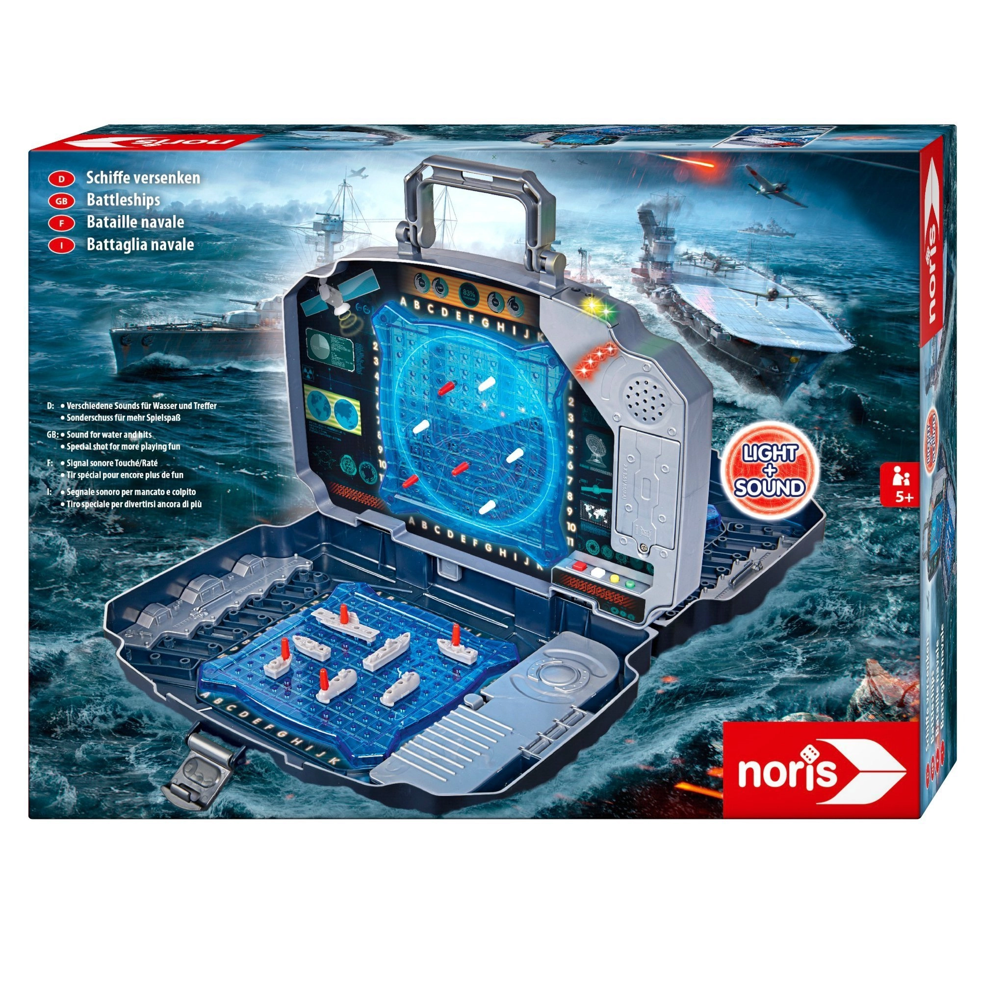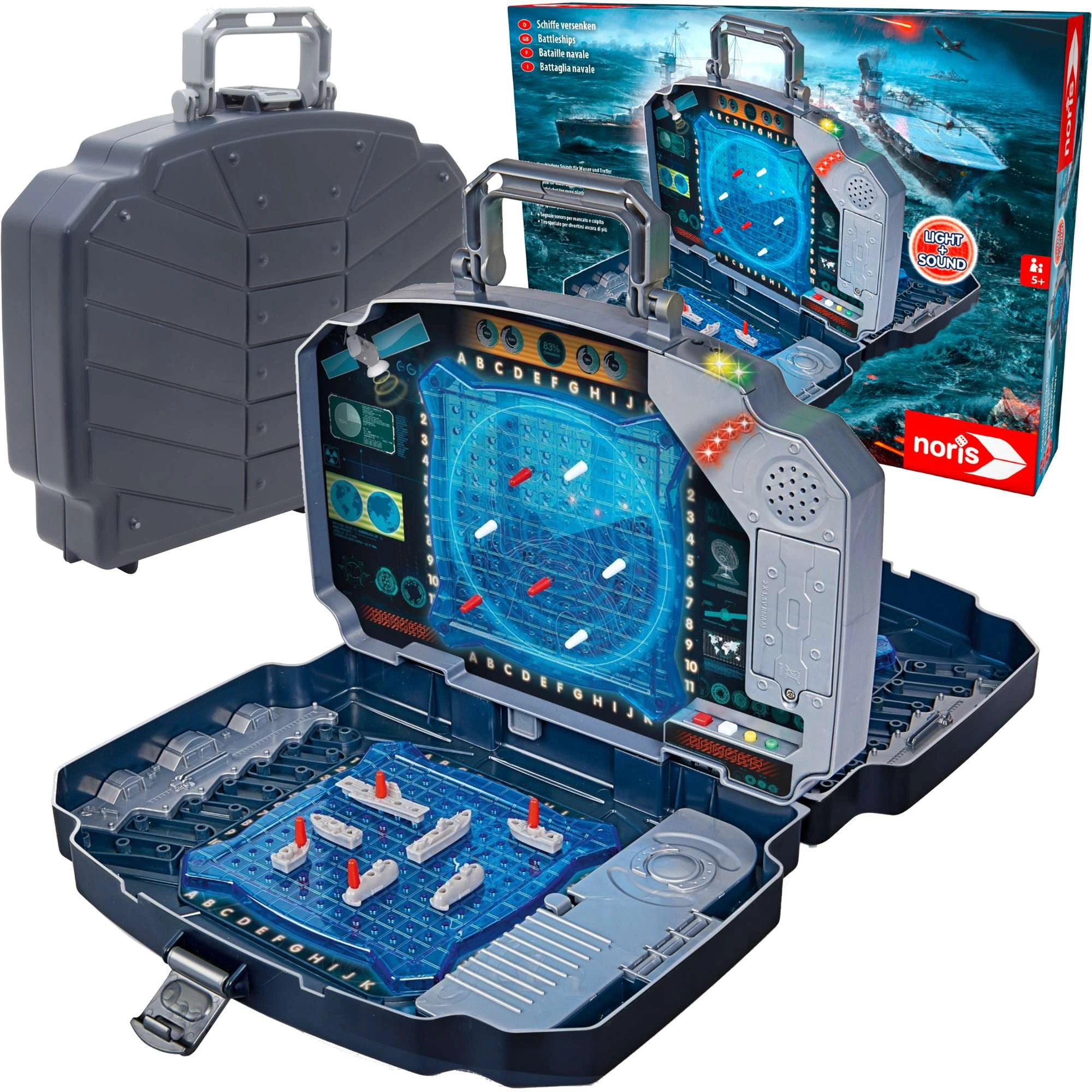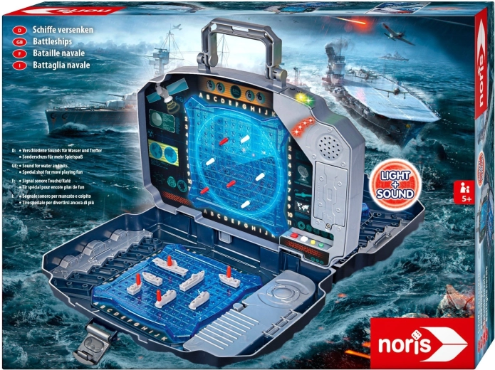Kaasaskantav elektrooniline Merelahingu mäng vastupidavas kohvris kahe sinise mänguvõrgustiku, hoiusahtlite ning tule- ja heliefektidega. Mõeldud 2 mängijale, tabamuste lihtsaks jälgimiseks kasutatakse punaseid ja valgeid nuppe, ning intuitiivne juhtimine sobib lastele alates 5. eluaastast. Ideaalne nii koju kui ka reisile.