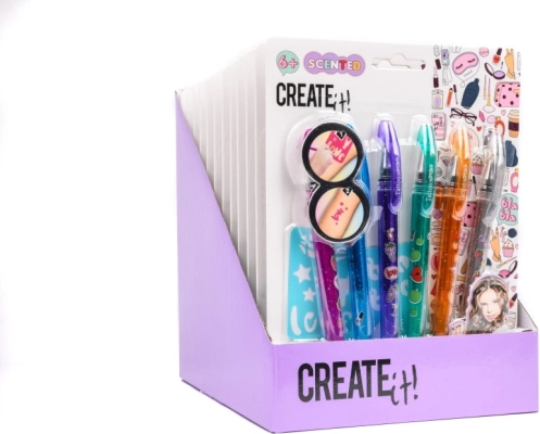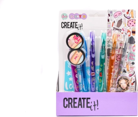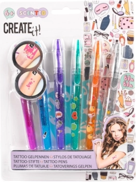 Ole loov selle suurepärase CREATE it! tetoveerimiskomplektiga. Komplekt sisaldab kuut värvilist lõhnastatud pliiatsit roosa, sinise, lilla, rohelise, oranži ja hõbedase toonis, mis võimaldavad luua lõputult erinevaid disaine. Iga pliiats on dekoratiivse kujundusega ja meeldiva aroomiga, et muuta kasutuskogemus veelgi lõbusamaks.