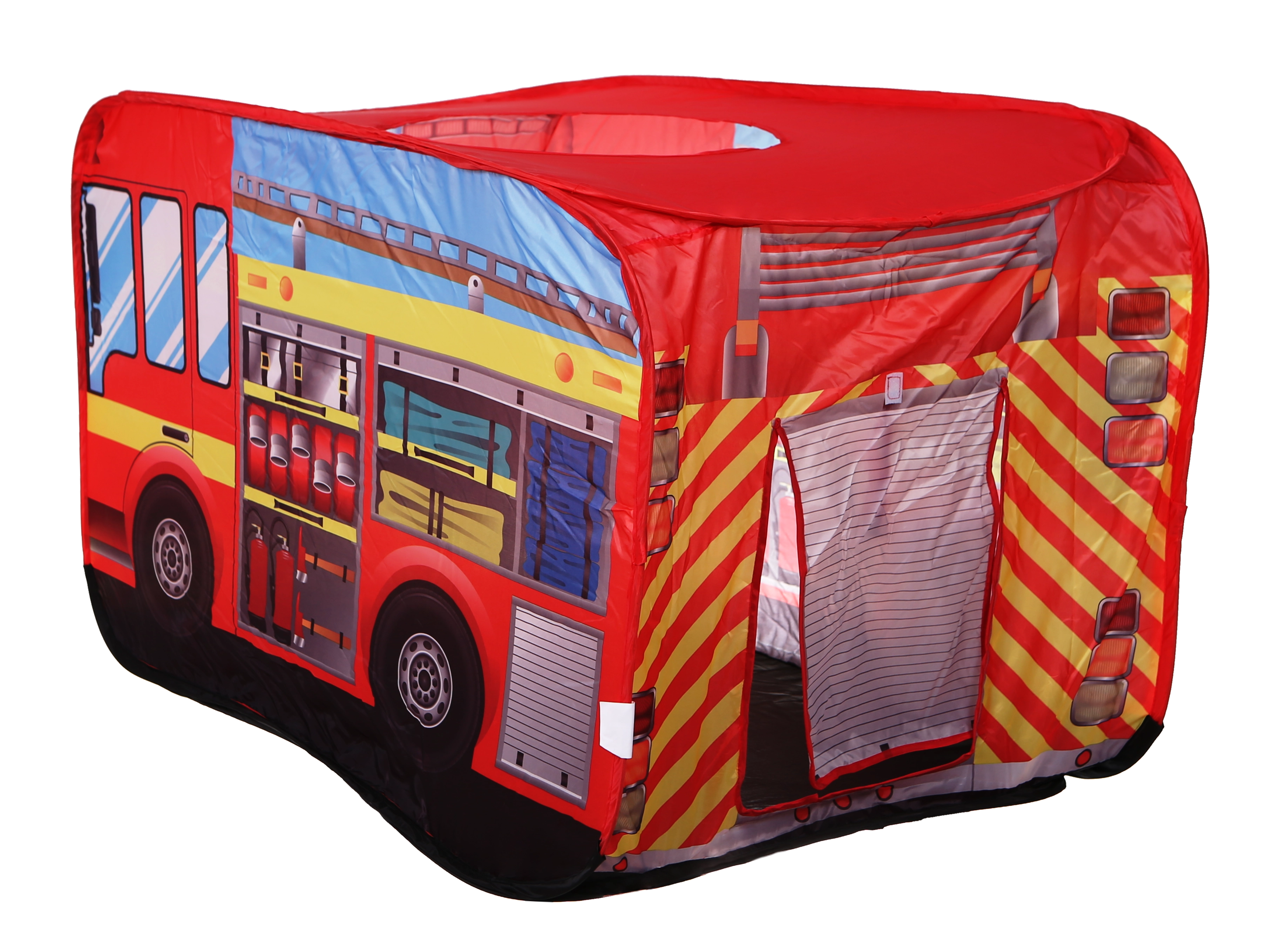 Telgil on avatav katus “kustutamiseks” ja ümbruse jälgimiseks, tagumine sissepääs lihtsaks läbi pugemiseks ning veekindel põhi puhtaks ja mugavaks mänguks. Kerge ja vastupidav polüester on lihtne hooldada ning erksad tuletõrjeauto motiividega värvid köidavad lapsi kohe.