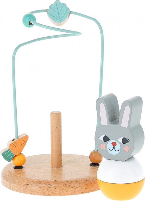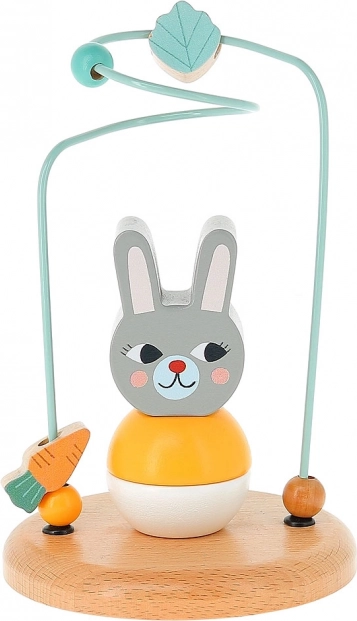 See puidust labürint metallist rajaga ja jänkufiguuriga pakub lõbusat tegevust, kus lapsed liigutavad helmeid ja kujundeid (porgand, leheke) mööda looklevat teed. Mänguasi toetab peenmotoorika, keskendumisvõime ja kannatlikkuse arengut ning on samal ajal tänu kindlale puidust alusele ohutu ja stabiilne.