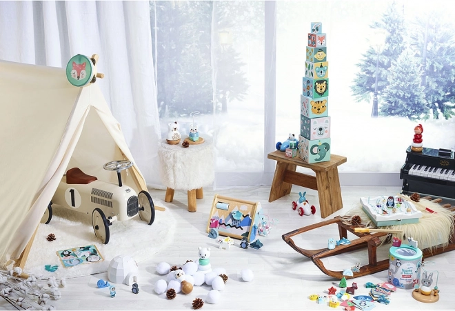 Puitu ja metalli ühendavad ümarad servad tagavad mänguasja stabiilsuse ja pika kasutusea igapäevasel mängimisel.
