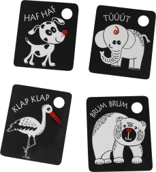 Toetage oma beebi varajast arengut kontrastsete kaartidega, mis stimuleerivad nägemist ja tähelepanu. Komplektis on 9 vastupidavat kaarti Eesti materjalidest, riputusava ja plastist rõngaga lihtsaks ühendamiseks. Kaardid arendavad nägemisstimulatsiooni, peenmotoorikat ja loomade tundmaõppimist.
