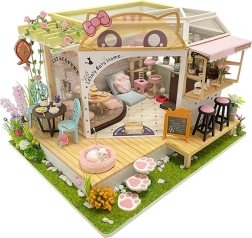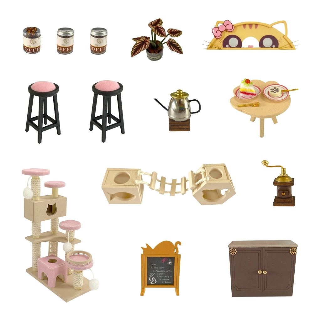 Ehit ainuomane miniatuurne kohvik täis armsaid kassidetaile, mööblit ja aksessuaare. Iga tükk pakub rõõmu ehitamisest ning valminud tulemusest saab stiilne kaunistus riiulile, kabinetti või lastetuppa. Tänu LED-valgustusele paistavad kõik detailid silma ka õhtuti.