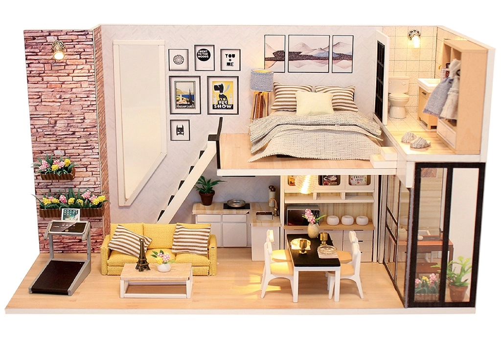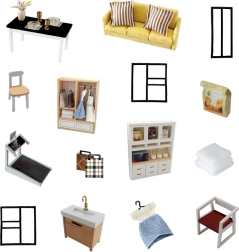 Komplektis on LED-valgustus, mis annab sinu loomingule realistse ilme. Silmapaistvad on ka realistlikud dekoratiivsed detailid, sealhulgas kunstseinad, diivan ja söögiala komplekt.