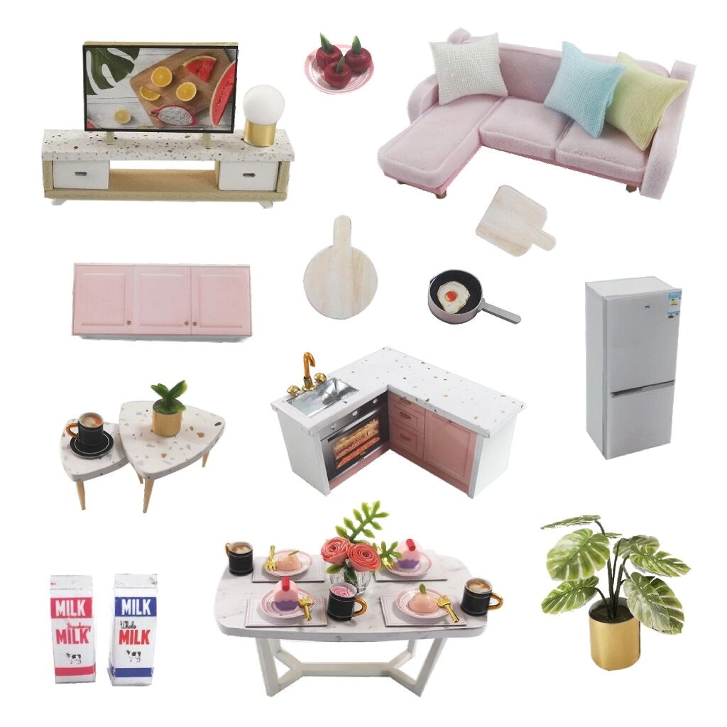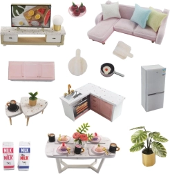 Elunurk, söögituba, köök ja magamistuba mininõude ja -dekoratsioonidega loovad usutava ja mõjuva terviku.