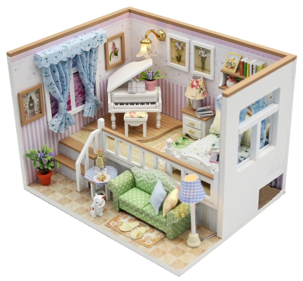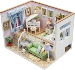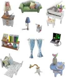 Loo oma miniatüürne interjöör, mis on täis realistlikke detaile – mugav diivan patjadega, elegantne klaver, voodi tekstiilidega, lambid, riiulid ja õrnad dekoratsioonid. Integreeritud LED-valgustus lisab stseenile hubasust ja muudab sinu loomingu ainulaadseks dekoratsiooniks riiulil või töölaual.