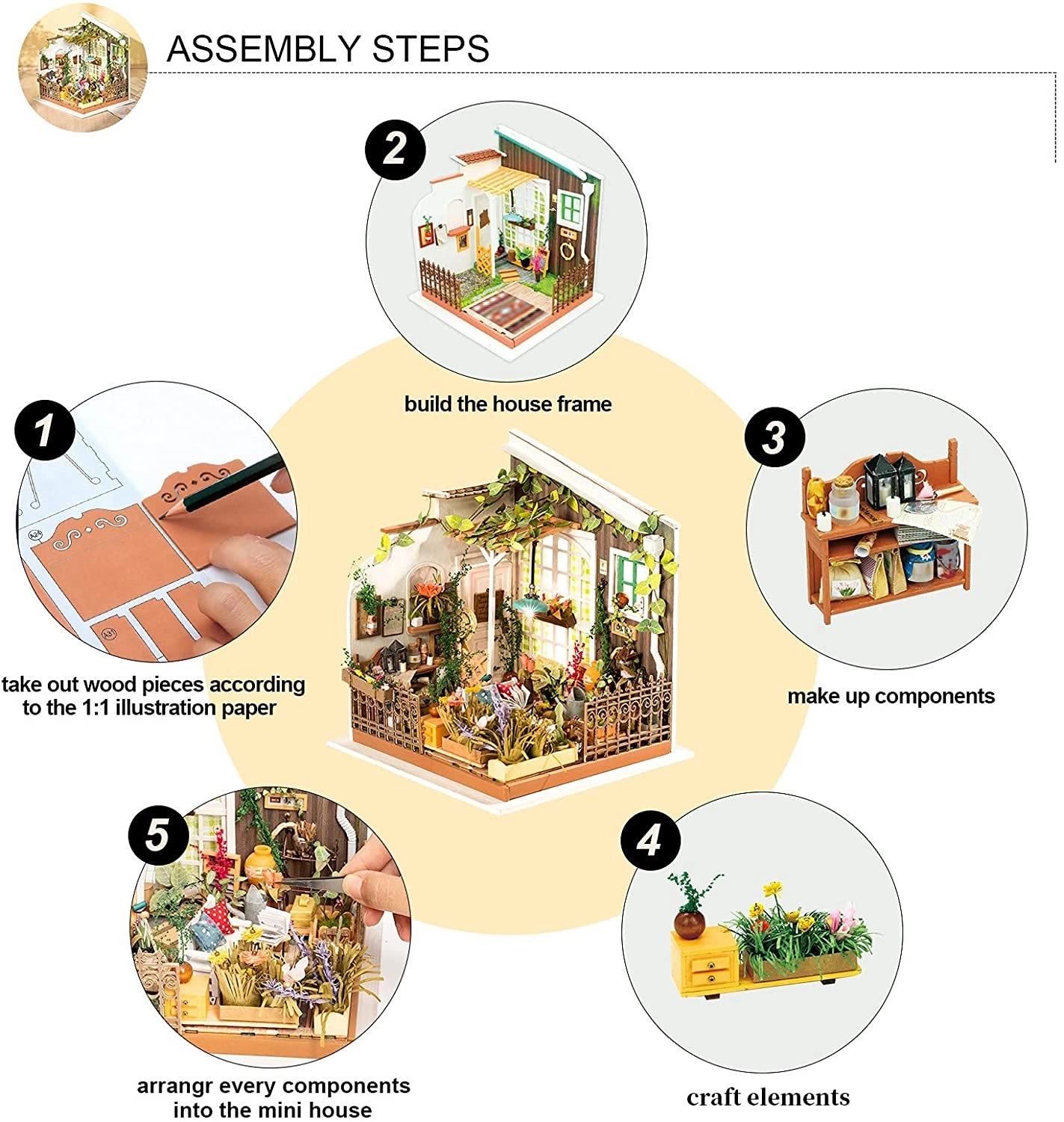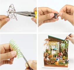 See läbimõeldud DIY miniatuur muudab teie vaba aja meeldivaks loominguliseks kogemuseks. Komplekt sisaldab eellõigatud vineerosi, paberiprinte, tekstiili- ja metallosi, värve ning liimi. Tänu LED-valgustusele tulevad kõik detailid esile ja valminud mudelist saab stiilne riiulikaunistus või töötoa aksessuaar.