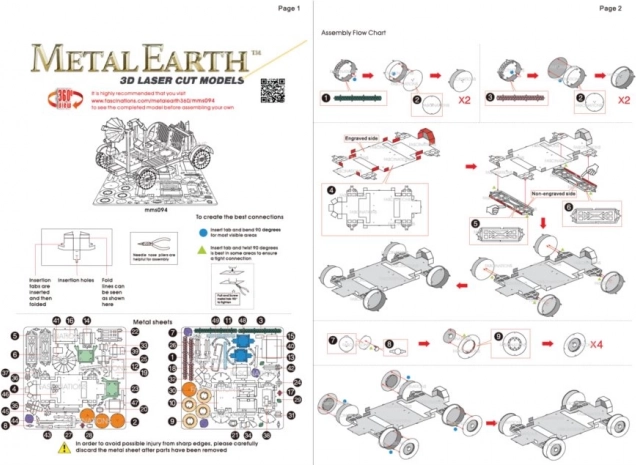 Ehita endale miniaturne Kuuauto legendaarse METAL EARTH seeria hulgast. See metallist 3D mudel koos lasergraveeringuga pakub täpseid detaile, nauditavat väljakutset kannatlikele ehitajatele ning stiilset dekoratsiooni koju, kontorisse ja kooli. Kahe roostevabast terasest lehega paned kokku muljetavaldava mudeli ilma liimita – vajad vaid tange ja osavaid käsi.