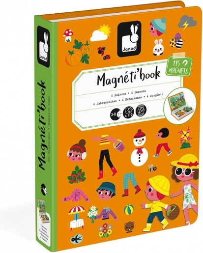 Janod Magnetibook – aastaajad arendab kujutlusvõimet, loogilist mõtlemist ja peenmotoorikat. Lapsed panevad kaartide järgi kokku eri aastaaegade stseene ning valivad neile sobivad riided ja aksessuaarid. Tänu kompaktselt raamatu kujulisele teostusele on see ideaalne reisile, autosse ja külla kaasa võtmiseks.