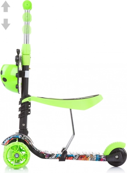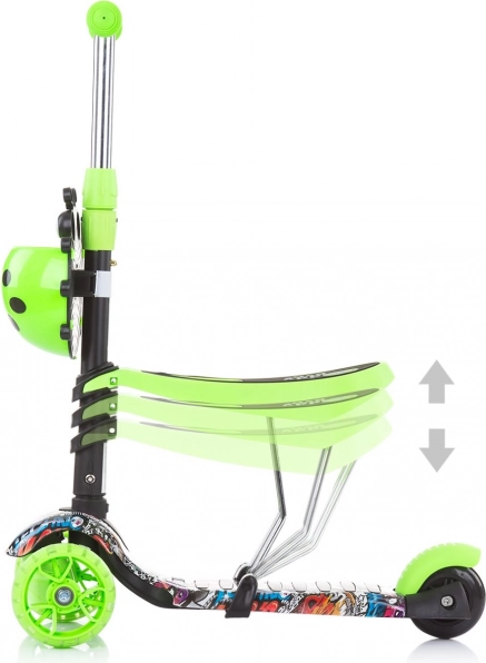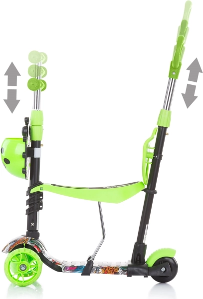 Kõrgust saab hõlpsalt kohandada – iste 3 asendis (22–29 cm) ja lenks samuti 3 asendis, et tagada õige ergonoomika. Eesmistel ratastel olevad värvilised LED-tuled süttivad sõidu ajal, lisades igale väljasõidule nii nähtavust kui ka lusti. Praktiline esikorv mahutab pisiasju, kummikattega käepidemed on käele mõnusad ja pakuvad head haaret.