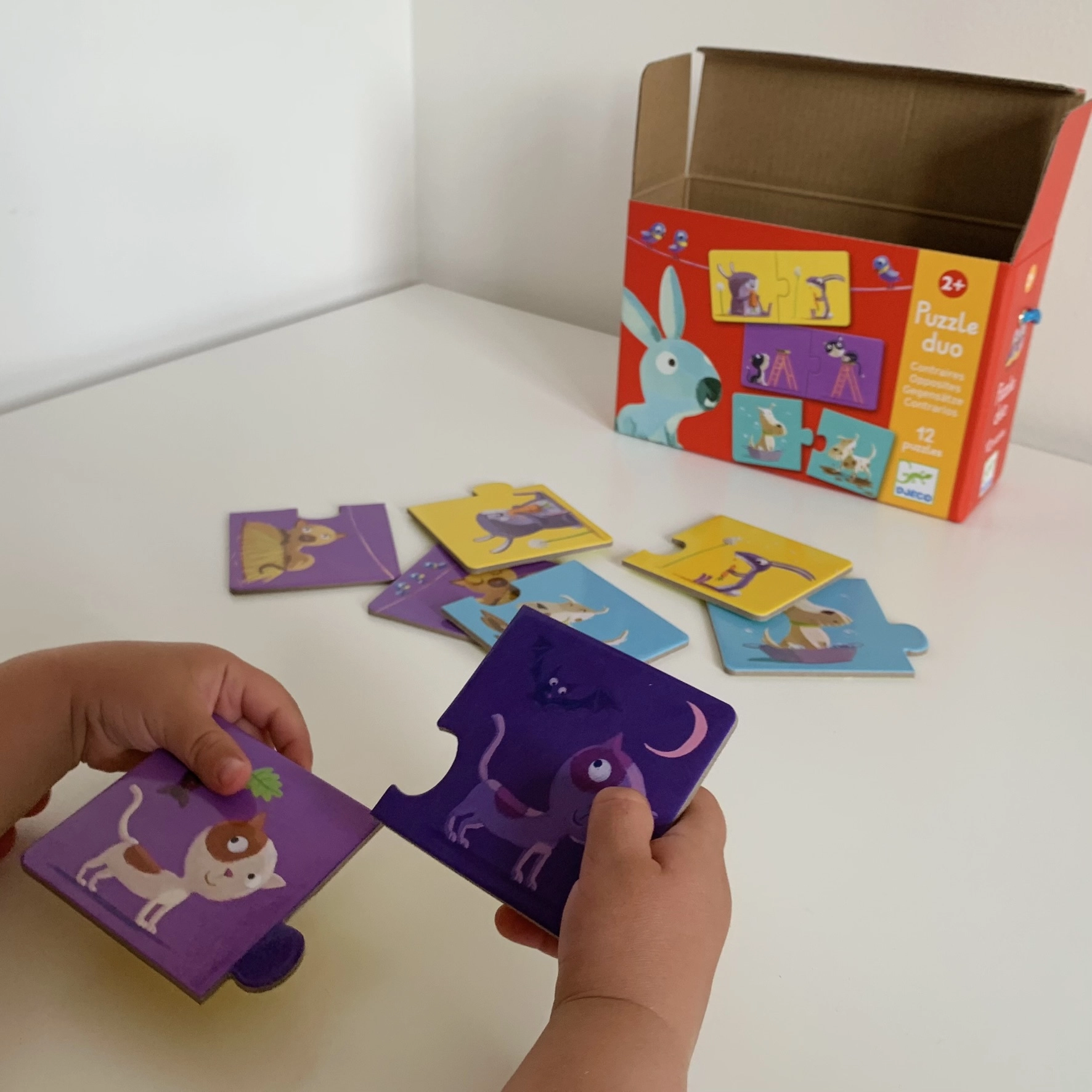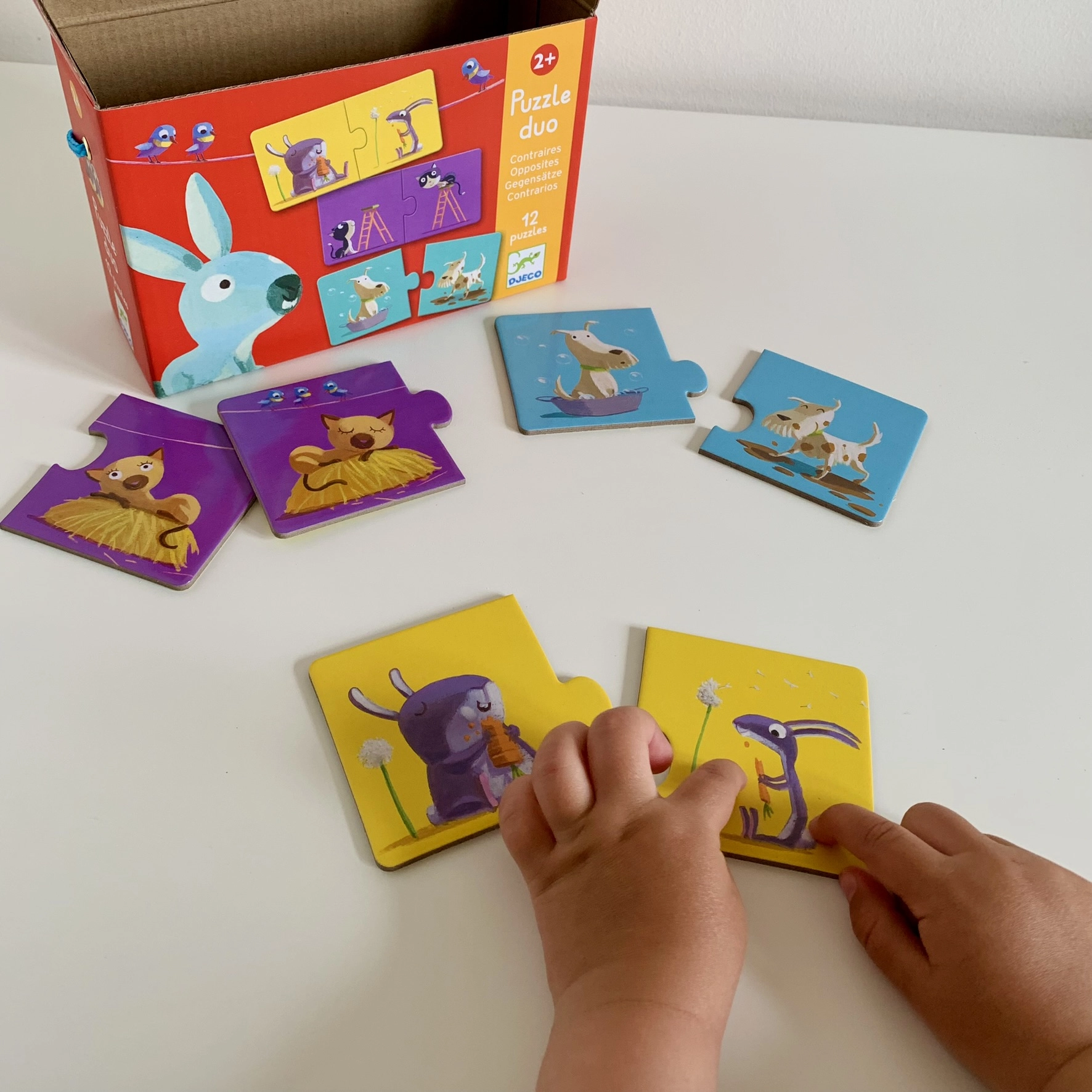 DJECO mänguasjad on suurepärased laste peenmotoorika, ruumilise taju ja tähelepanu arendamiseks. Vastandite pusle meeldib lastele, kes õpivad tänu värvilistele piltidele ja mängulisele iseloomule kiiresti erinevusi ja vastandeid tundma.