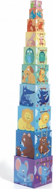 DJECO populaarne karbitorn emade ja nende poegade ilustratsioonidega. Lapsed saavad ehitada kuni 89 cm kõrguse torni, seda ümber lükata ja karpe üksteise sisse asetada, õppides loomulikul viisil värve, kujundeid ja esimesi arvutusi ning arendades peenmotoorikat. Komplekt sisaldab 10 karpi tundideks lõbusaks mänguks.