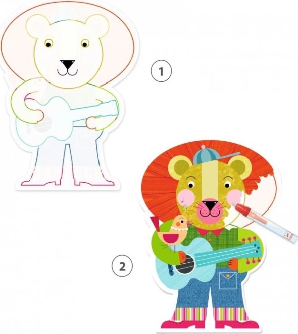 DJECO veejoonistused arendavad peenmotoorikat, keskendumist ja kujutlusvõimet. Need on väikestele lastele ohutud ning tänu vastupidavatele kaartidele ja praktilisele sulgemisega ümbrisele sobivad suurepäraselt nii koju kui ka reisile.