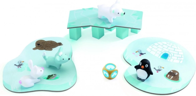 Komplekt sisaldab 4 detailseid loomakujukesi (pingviin, jääkaru, valge rebane, valge jänes), 3 mängulauda jäämotiiviga, eriosi nagu jääaugud, sild, igluplaat ja 6 sammast. Tänu lihtsatele reeglitele ja atraktiivsele teostusele on mäng ideaalne esimene koostöökogemus lasteaialastele.