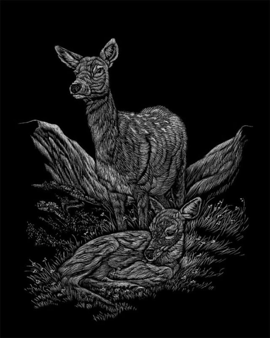 Avasta loov lõbu kodus ja teel koos komplektiga ROYAL & LANGNICKEL. Plokis on 12 kraapimispilti motiividega Põhja-Ameerika metsloomadest, 12 tühja lehte oma loometööks ning plastikust kraapimispulk metallist otsaga. Musta kihi all peitub kuldne, hõbedane, vikerkaarevärviline ja holograafiline taust, iga pildi juures on lisaks ingliskeelne kirjeldus keeleoskuse arendamiseks. Sobib alates 8. eluaastast.