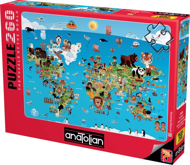 Otsite puslet, mis ühendab lõbu ja õppimise? ANATOLIANi joonistatud maailma kaart toob teieni armsad illustratsioonid mandritest, loomadest ja vaatamisväärsustest koos ingliskeelsete märgenditega, nii et puslet kokku pannes harjutate loomulikul moel ka võõrkeelt. 260 tükki teevad sellest ideaalse valiku koolilastele ja perega koos ladumiseks.