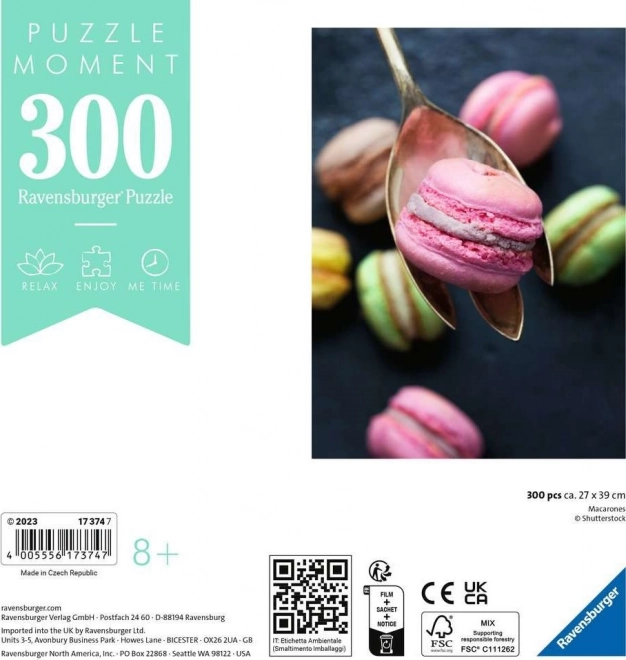 Naudi kvaliteetset puslepanekut Ravensburgeri Puzzle Moment sarjaga. Värviliste makroonide motiiv ja 300 tükki on ideaalsed lühikesteks puhkepausideks, täpne teostus ja täiuslik sobivus tagavad suurepärase elamuse.