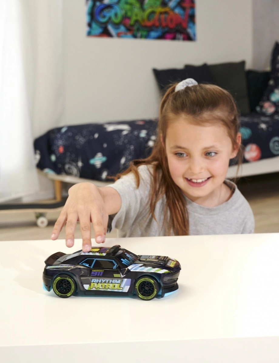 Avasta täiskiirusel lõbu politseiautoga Streets’n Beatz Rütmipatrull. Tänu hõõrde- (inerts-) ajamile hakkab auto hõlpsasti liikuma pelgalt tõmbamisest, samal ajal kui LED-valgustus ja dünaamilised heliefektid loovad tõelise tagaajamise atmosfääri.