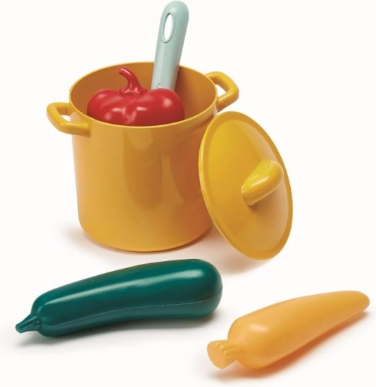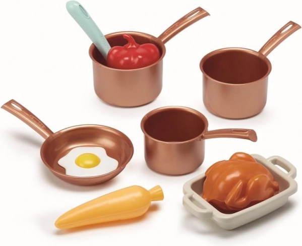 Komplektis on lai valik erksavärvilisi potte ja panne, mis äratavad väikeste kokkade uudishimu.