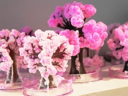 Pärast niisutamist tekivad mõne tunni jooksul õrnad roosad kristallid, mis matkivad õitsevat sakurat ja muudavad lihtsa puu pilkupüüdvaks dekoratsiooniks.