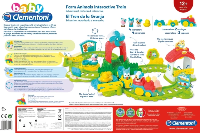 See värvikirev ja lõbus rongikomplekt muudab laste mängu taluseikluseks. Niipea kui rong möödub, ärkab talu ellu: kraana nooled tõusevad, tuulik hakkab pöörlema ja loomad annavad oma iseloomulikke häälitsusi. Kui kollane värav suletakse, hakkab pardike „ujuma“ ümber tiigi ning karussell pöörleb. Suurepärane viis silma-käe koordinatsiooni stimuleerimiseks ja laste kujutlusvõime ergutamiseks.